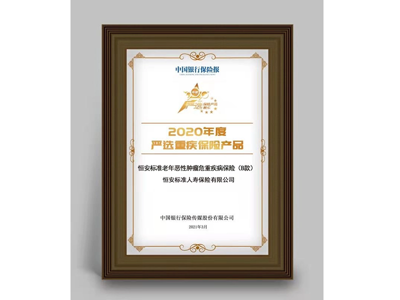 獲“2020年度嚴選重疾保險產(chǎn)品”獎項 3月