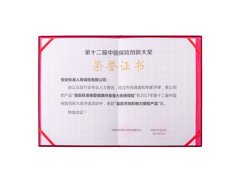 獲“最具市場(chǎng)影響力保險產(chǎn)品”獎項 11月